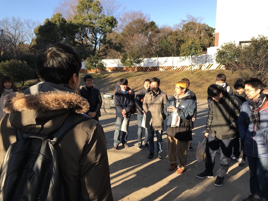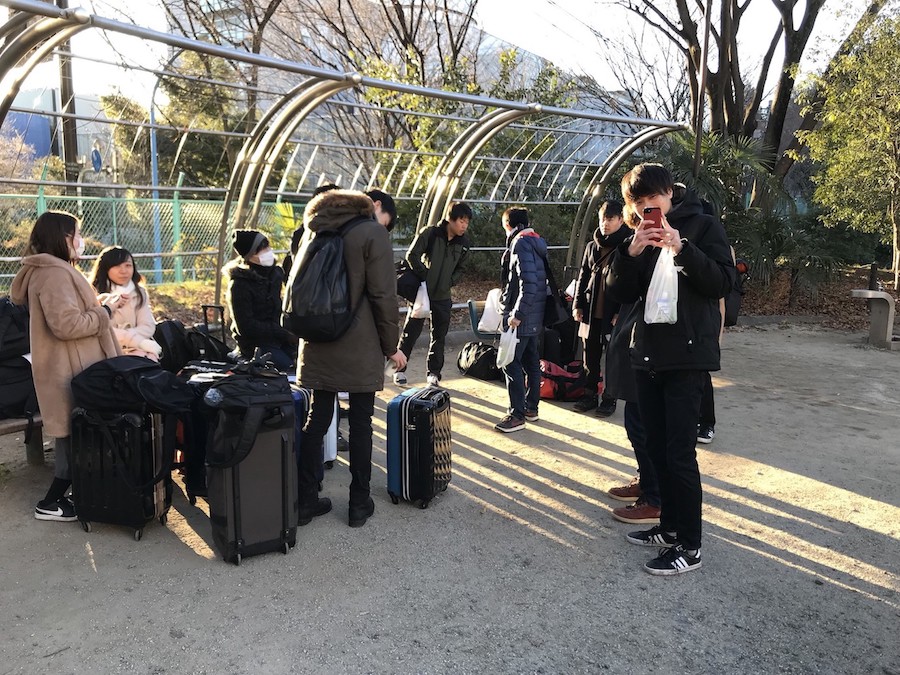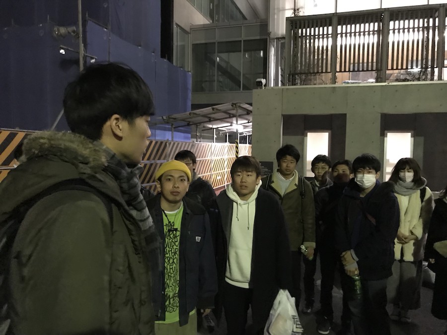 早朝から学生会館の前の戸山公園にて集合しています。