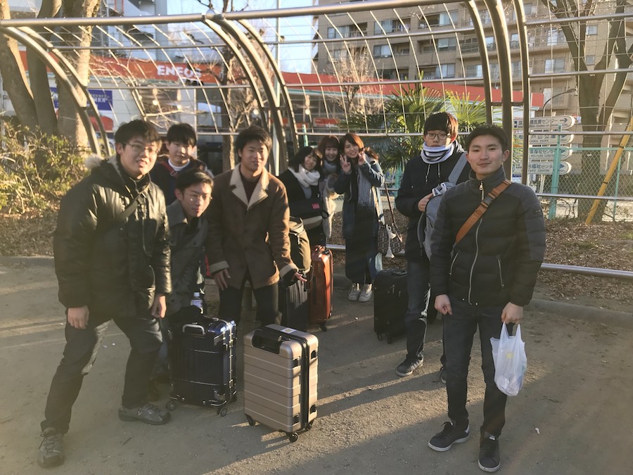 宿の前で集合写真をパシャり。