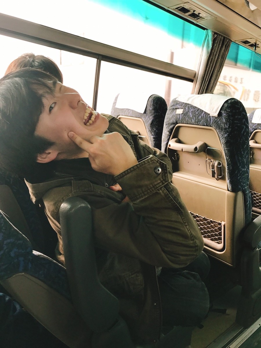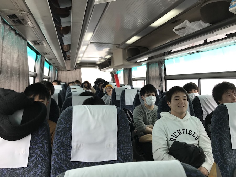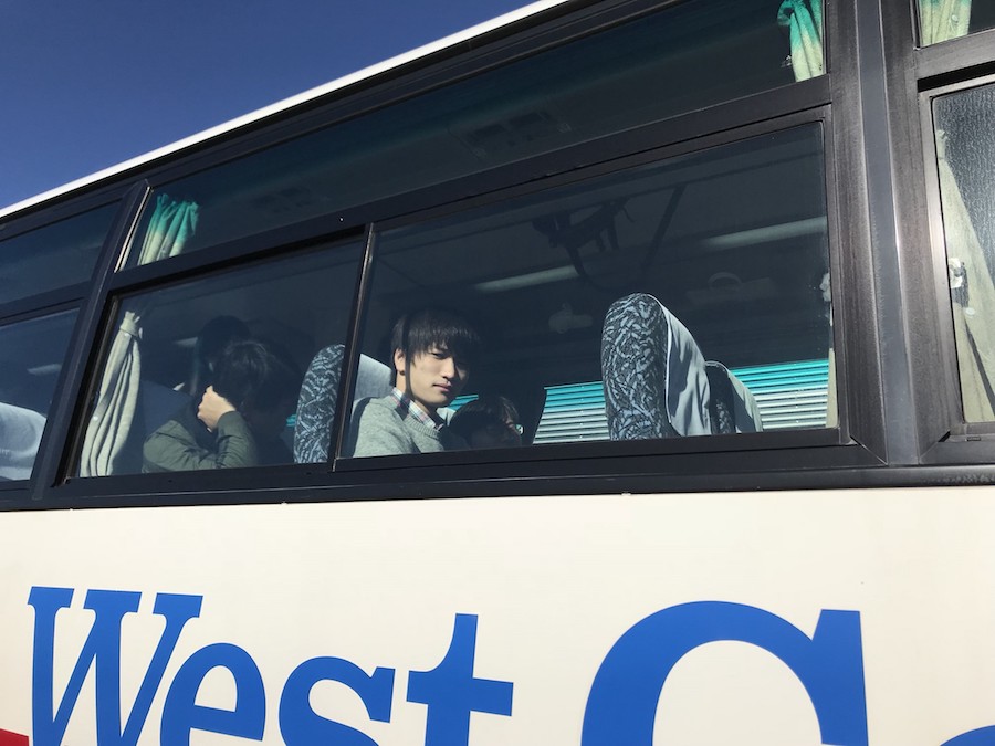 早速バスに乗り込みドラゲナイみたいな拓海(55)の挨拶とともに出発進行!