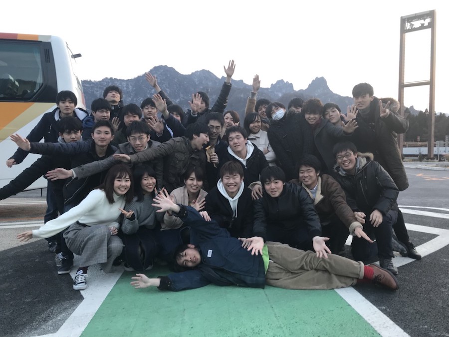 サービスエリアでは仲良しなサークルを意識して集合写真をパシャり。