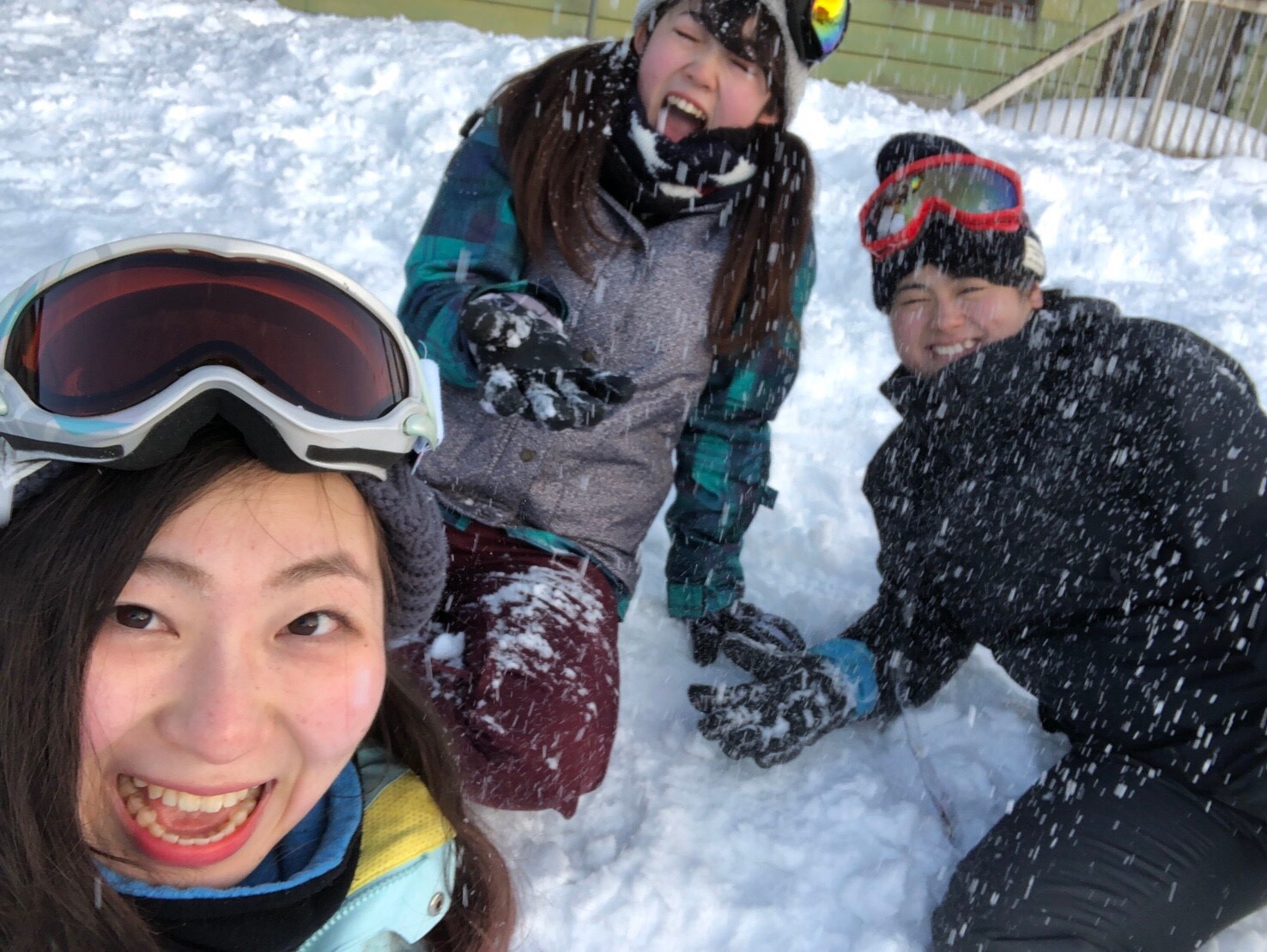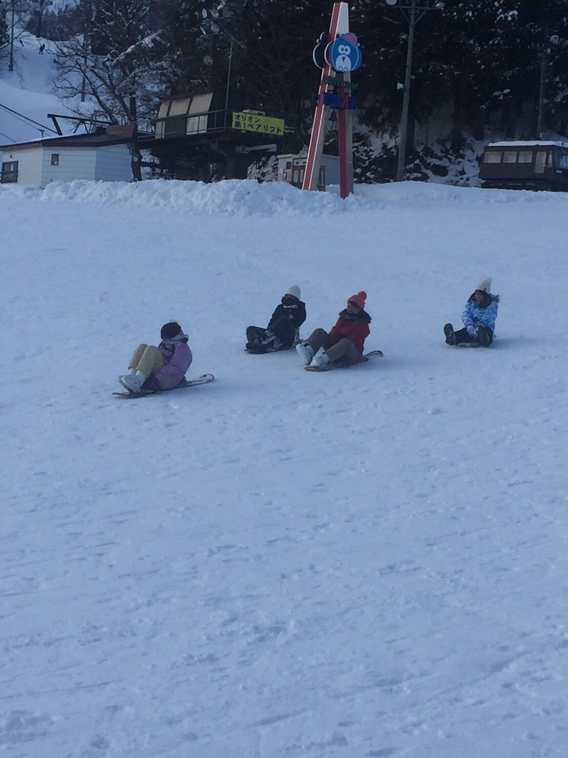 滑るのに飽きた人たちは雪遊びを始めました。